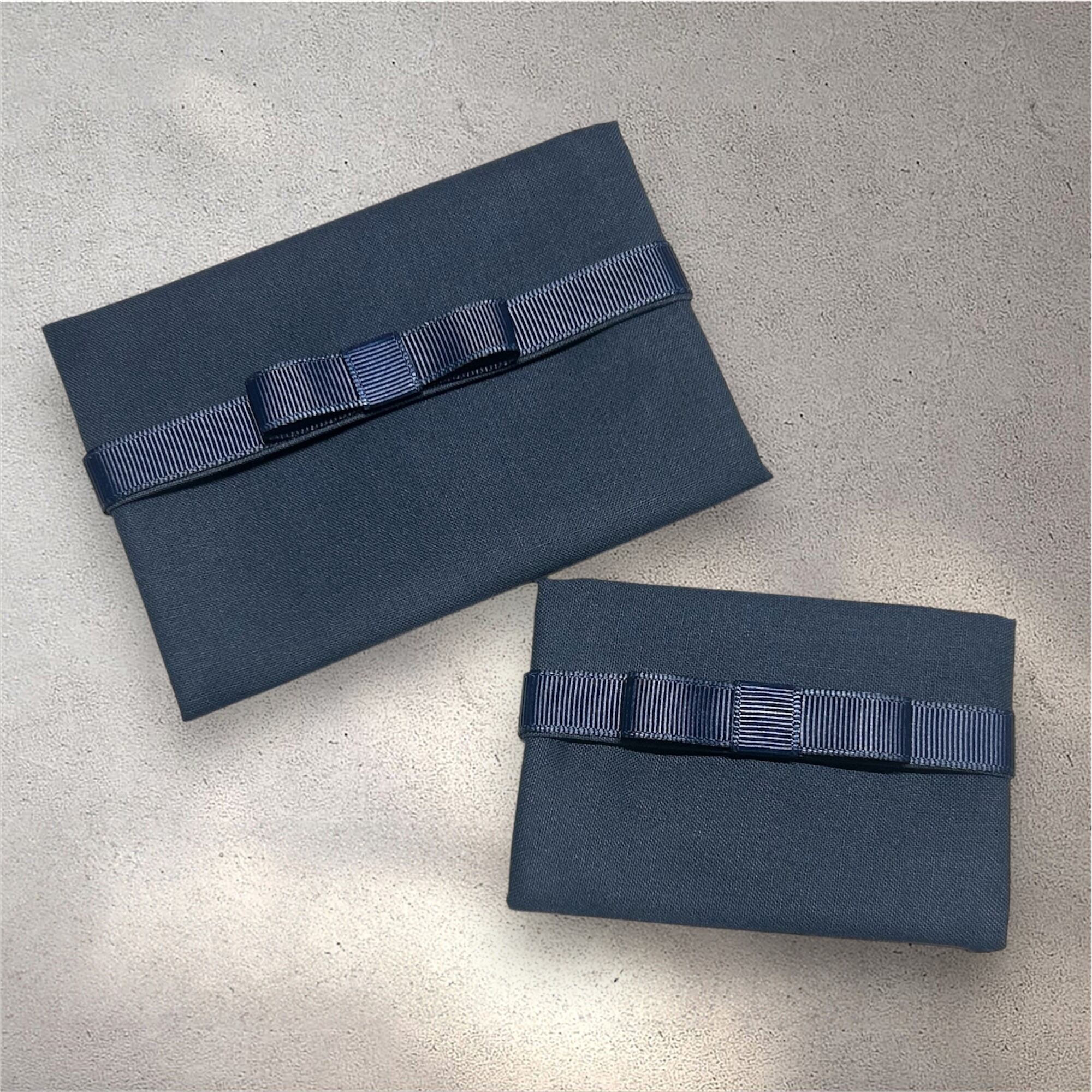 上品ネイビーのポケットティッシュケース(大小2個セット)